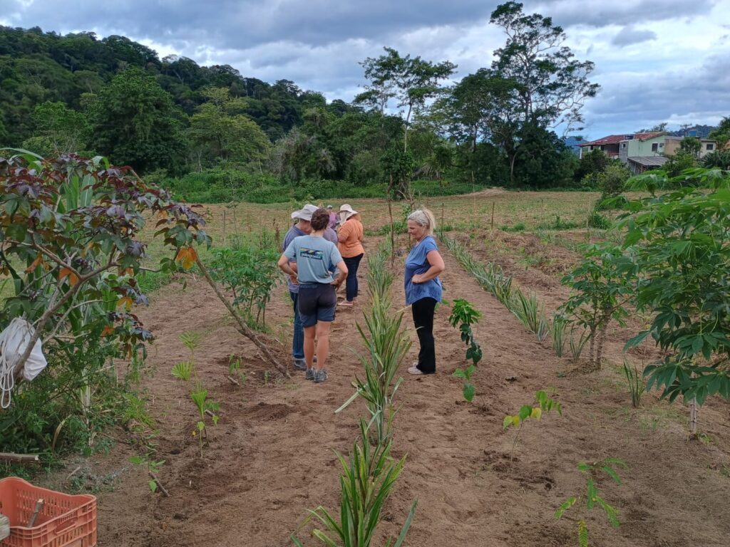 “Basicamente, implantamos diferentes consórcios de plantas que vão se sucedendo ao longo do tempo. Por exemplo, iniciamos a área com culturas anuais (feijão, milho, aipim). Em seguida, entram culturas como mamão, banana e guandu, que permanecem no sistema por 3 a 5 anos. Finalmente, estabelecem-se culturas como café, cacau ou laranja, que começam a produzir a partir de 4 ou 5 anos e podem permanecer no sistema por algumas décadas. Naturalmente, nos sistemas agroflorestais, as espécies florestais acompanham essa dinâmica de sucessão”, explicou o engenheiro agrônomo e consultor da AMLD, Jaime Franch.