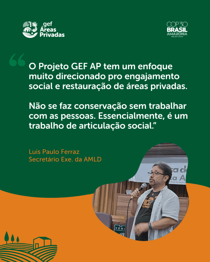 Representando a Rede de ONGs da Mata Atlântica, Luís Paulo Ferraz, diretor-executivo Associação Mico-Leão-Dourado (AMLD), detalhou como o GEF AP apoia atividades de conservação e restauração em propriedades privadas, contribuindo para ampliar a cobertura de vegetação nativa, recuperar áreas produtivas e reforçar a conectividade ecológica — especialmente em biomas altamente fragmentados, como a Mata Atlântica.